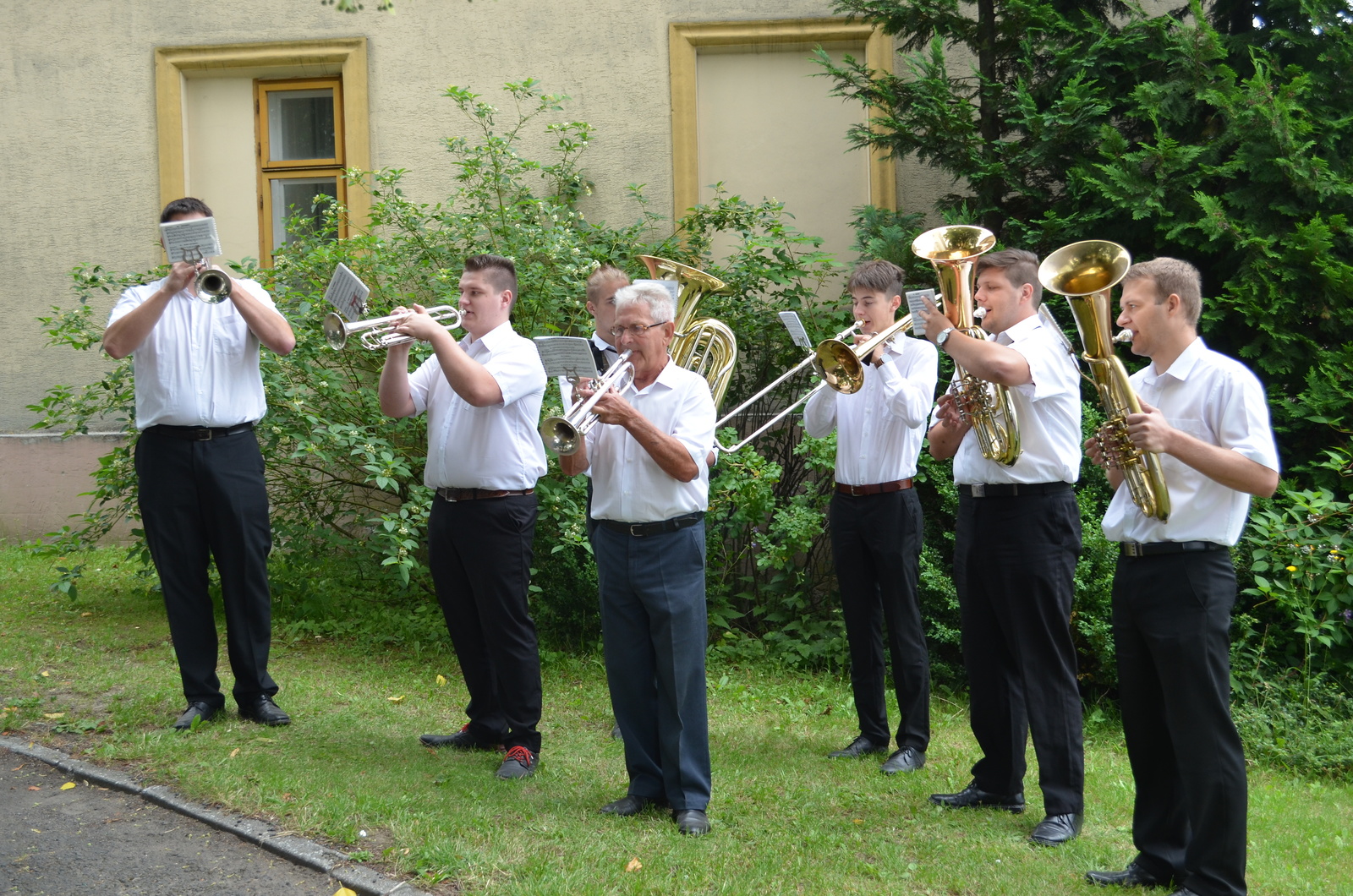Neděle - Dechová hudba u kostela sv. M. Magdaleny, Mše v kostele