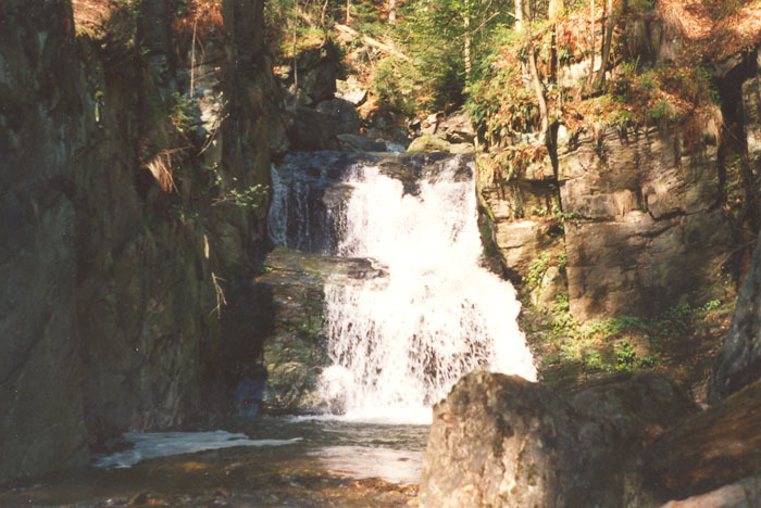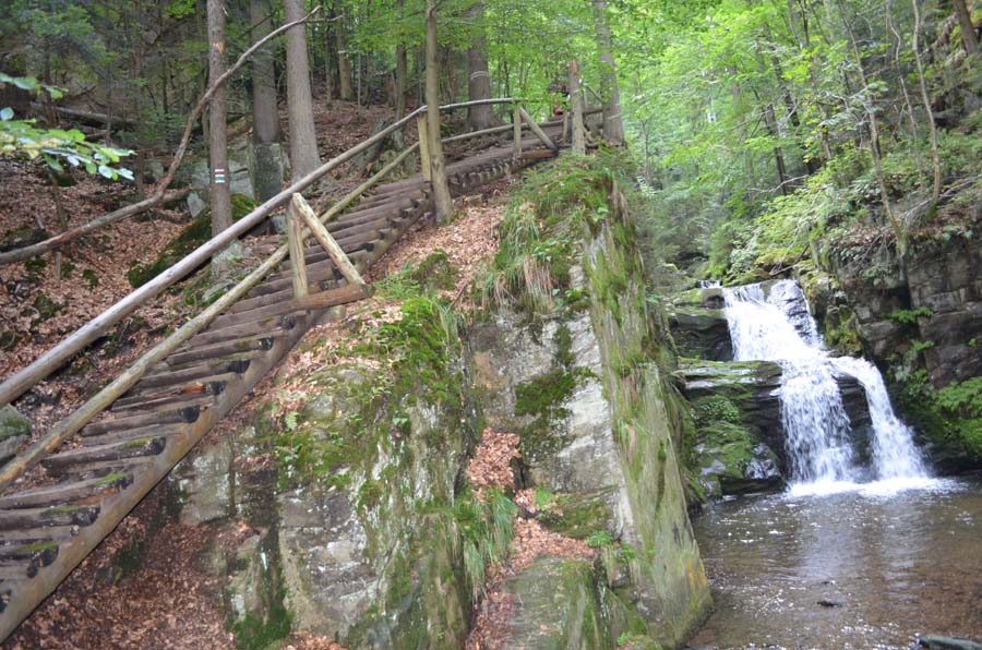 Na rozcestníku turistických cest - červená x zelená - se nacházíme v romantické části kaňonu a na další cestě překonáváme poměrně náročné terénní překážky i spadlé stromy. Netrvá to dlouho a jsme u kaskád vodopádů.
