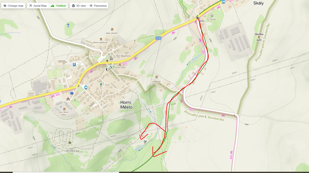 Jdeme po silnici až do Dobřečova. Při suchém terénu můžeme za Horním Městem (proti hydroglobu) odbočit vlevo polní cestou k vodárně a pak terénem mezi polem a mezí k silnici před Dobřečovem. Dobřečov je od Horního Města vidět, takže cíle snadno dosáhneme.